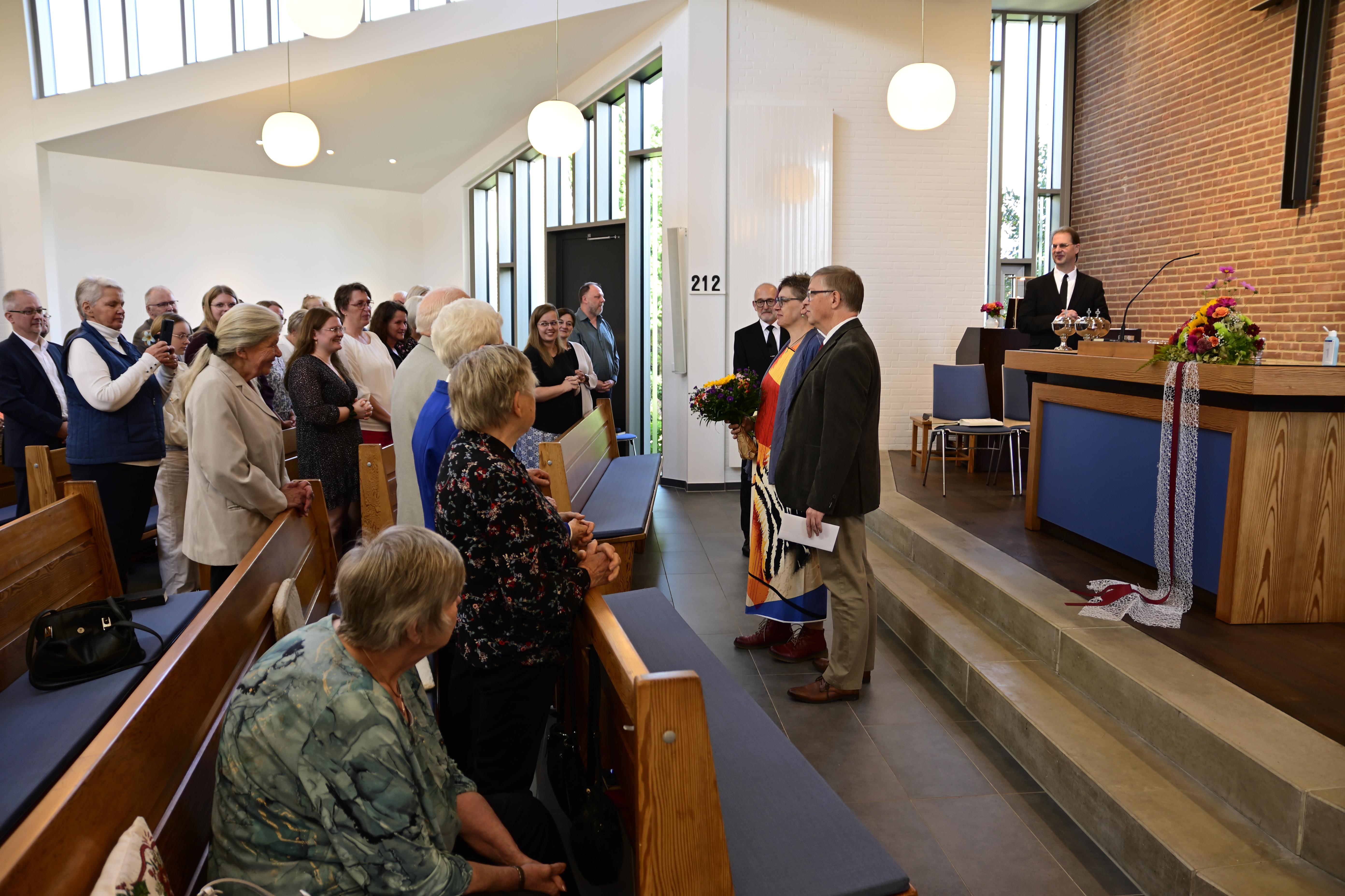 Die Gemeindemitglieder und Glaubensgeschwister Ursula und Hartmut Eggers bekamen den Segen zu Ihrer Rubinhochzeit. Vorsteher Achim Schmidt sprach ein paar persönliche Worte aus dem Leben und spendete nach kurzem Gebet den Segen.